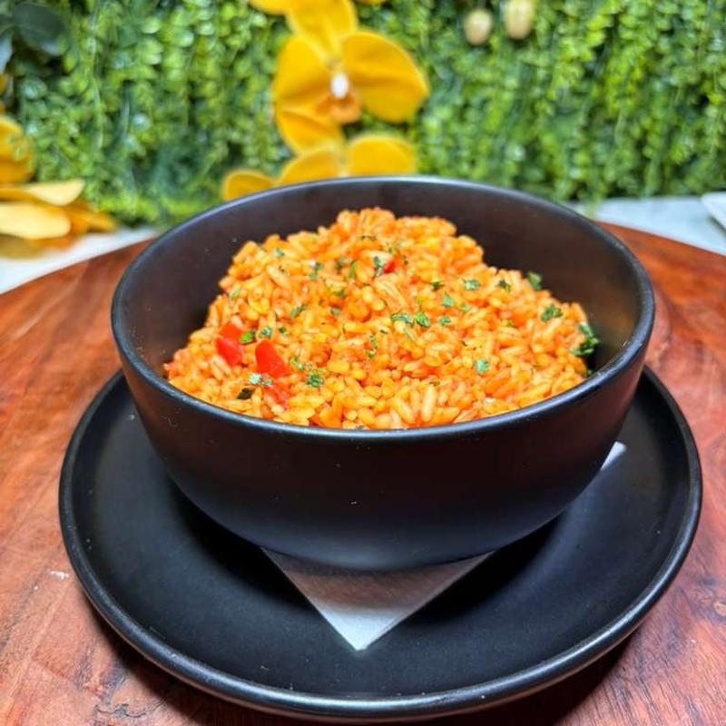 Tender steak marinated and seasoned with suya spice, served with jollof and fresh vegetables.